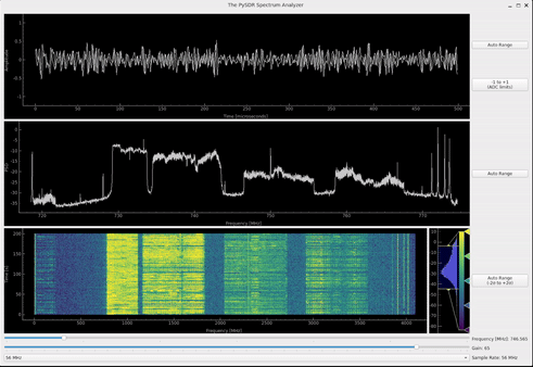 Dans ce chapitre, nous apprenons à créer des interfaces graphiques utilisateur (GUI) en temps réel avec Python grâce à PyQt, l’interface Python pour Qt. Nous y construirons un analyseur de spectre avec affichage du temps, de la fréquence et d’un spectrogramme/diagramme en cascade, ainsi que des widgets de saisie pour ajuster les différents paramètres SDR. Cet exemple est compatible avec PlutoSDR, USRP et le mode simulation uniquement.